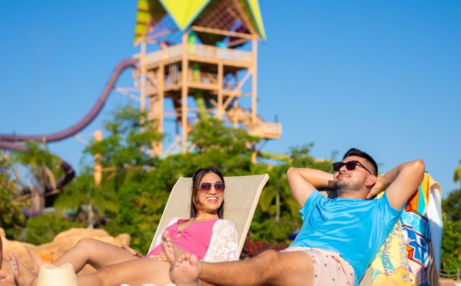 Imagine this: you've got your own private spot on the sunny beaches of Aquatica. Kick back in one of the many complimentary lounge chairs or upgrade to a reserved lounger or cabana.